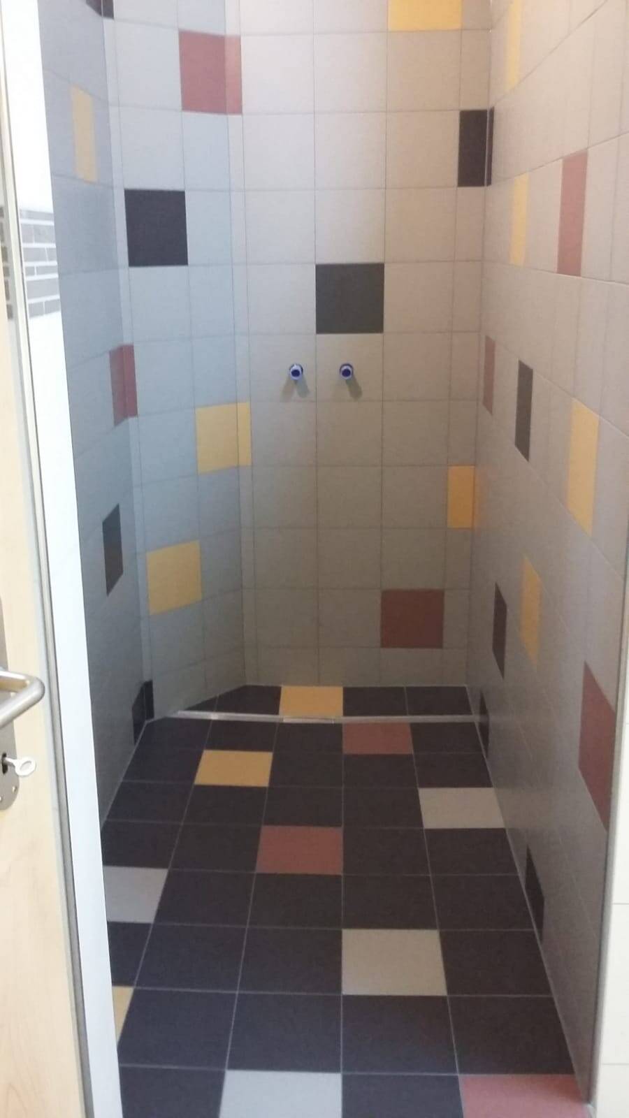Duschen mit grossformatigen Fliesen über alte Fliesen auskleiden-> keine Fugen mehr, dadurch nicht mehr schmutzempfindlich